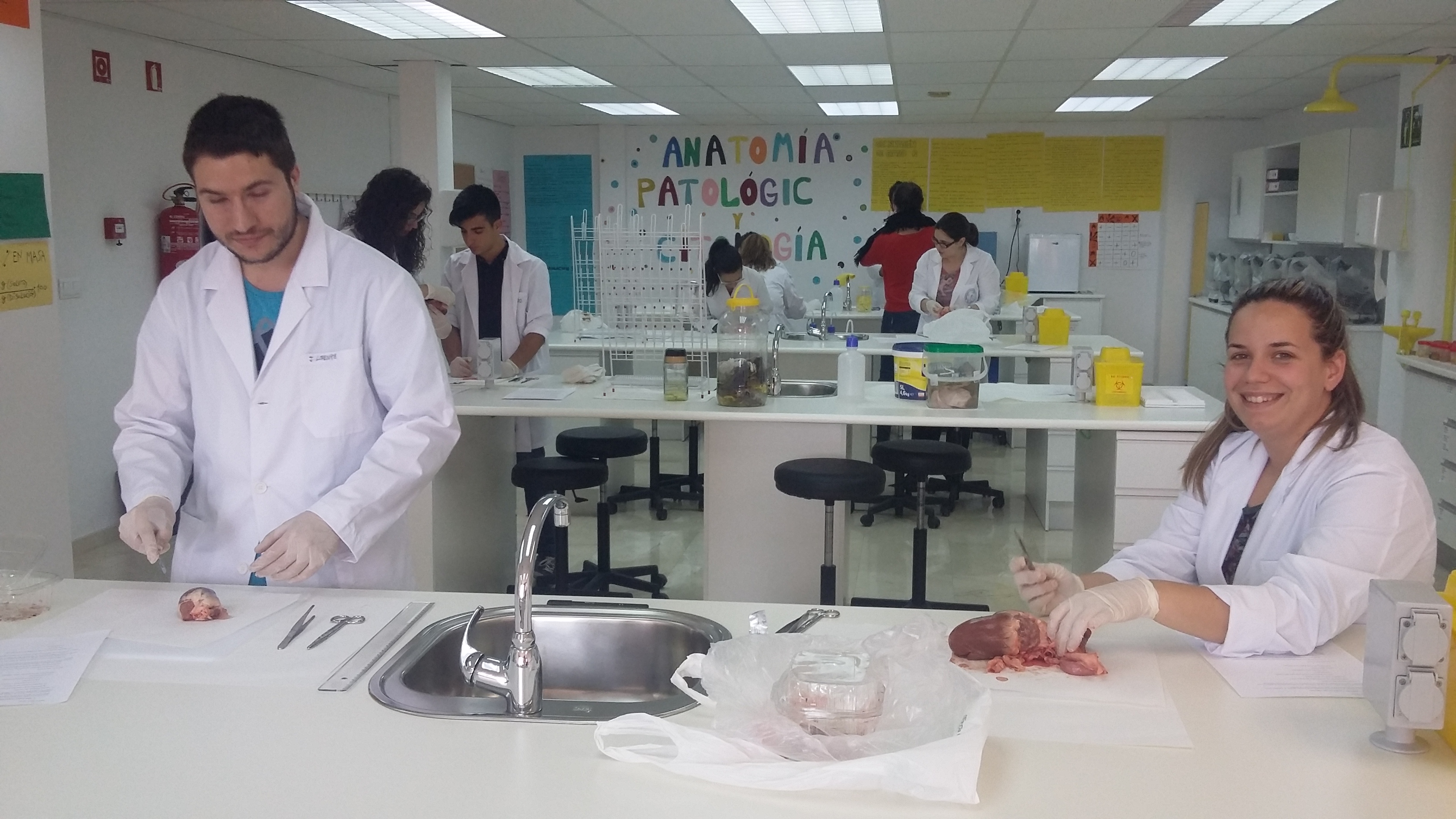 Los alumnos de Anatomía Patológica y Citodiagnóstico han realizado esta misma mañana en el laboratorio la práctica de la disección del corazón, pudiendo comprobar todo lo que están estudiando en Fisiopatología. Han disfrutado mucho con el primer contacto con mundo de la disección.
