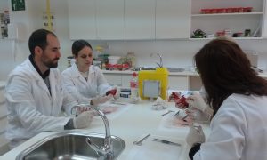 El fin de semana de prácticas llegaba a su fin así que las alumnas de segundo hicieron las últimas observaciones microscópicas y los alumnos de primero extrajeron el ADN de la fruta de temporada, las fresas